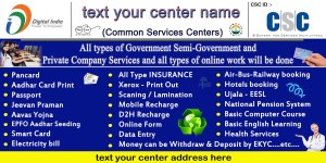 CSC рдорддрд▓рдм рдбрд┐рдЬрд┐рдЯрд▓ рд╕реЗрд╡рд╛ (рдИ – рд╕реЗрд╡рд╛), рдЬрд┐рд╕рд╕реЗ рдЧреНрд░рд╛рд╣рдХ рдХреЛ рд╕рдм рдСрдирд▓рд╛рдЗрди рд╕реЗрд╡рд╛ рдорд┐рд▓рддреА рд░рд╣реЗ рдФрд░ рдЙрдирдХреЛ рдкрд░реЗрд╢рд╛рдиреА рдХрд╛ рд╕рд╛рдордирд╛ рдирд╛ рдХрд░рдирд╛ рдкрдбрд╝реЗред